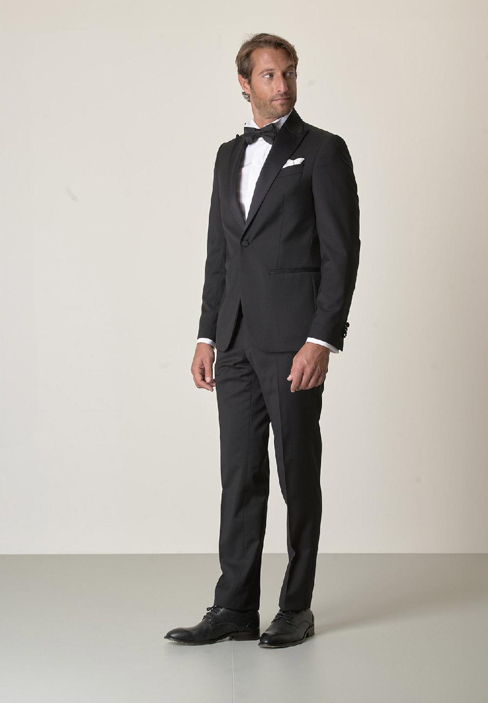 Angelico Smoking nero lana vergine super 100s custom fit Offerta esclusiva
