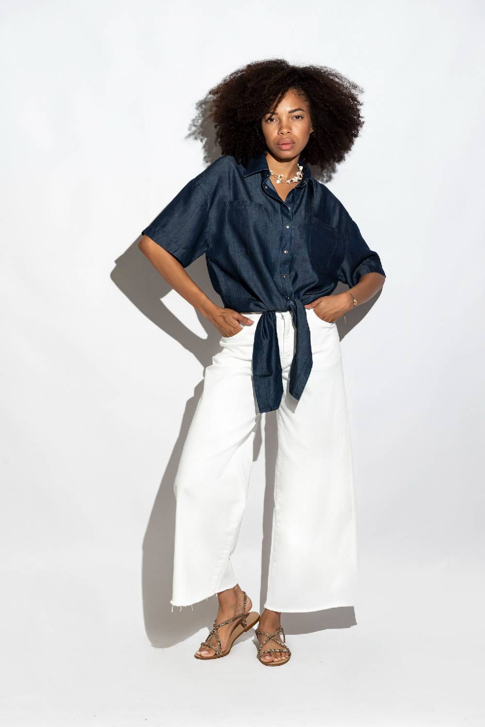 Camicia slim fit con tasche a toppa.In Denim leggero con trama gold.