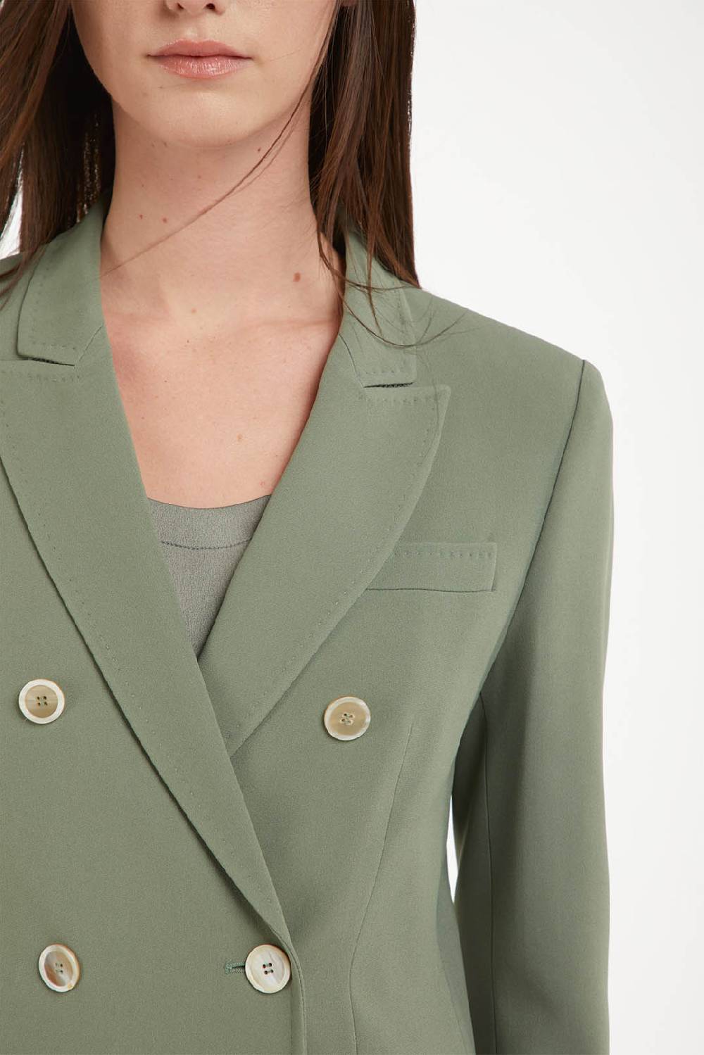Fluid stretch viscose cady double breast 6 buttons jacket, regular rever, flap pockets and high small pocket.