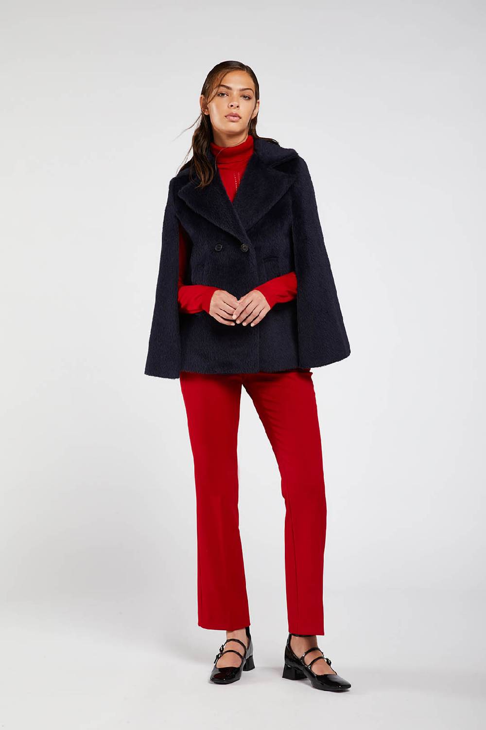 Fuzzy cloth in alpaca and virgin wool double-breasted closure cape and wide lapels.