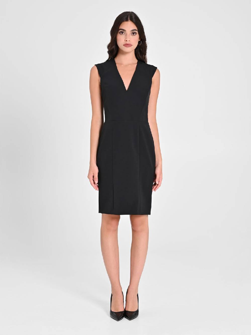 Abito modello tubino, realizzato in tessuto tecnico nero, con impunture a vista. La schiena del tubino è scoperta da un dettaglio cut-out. Il tubino ha un profonfo scollo a "V" ed è smanicato. Chiusura posteriore tramite zip. Completa il tuo outfit ed acquista insieme al tubino con schiena scoperta con la nostra collezione di accessori e calzature. Il capo è interamente made in Italy, la modella indossa una taglia S ed è alta 1,73 mt. Il capo in taglia S corrisponde alle seguenti misure: Il seno misura 83 cm, la vita misura 71 cm,la lunghezza è 49 cm.