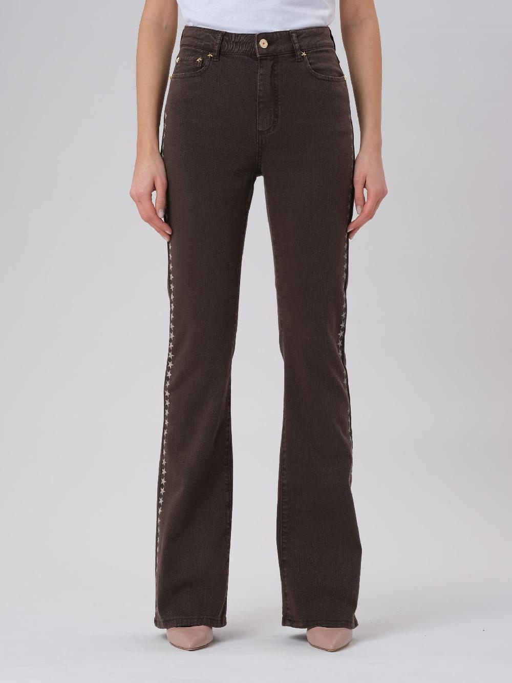 Tinto marrone, bande laterali con applicazione di piccole stelle glitter color oro.