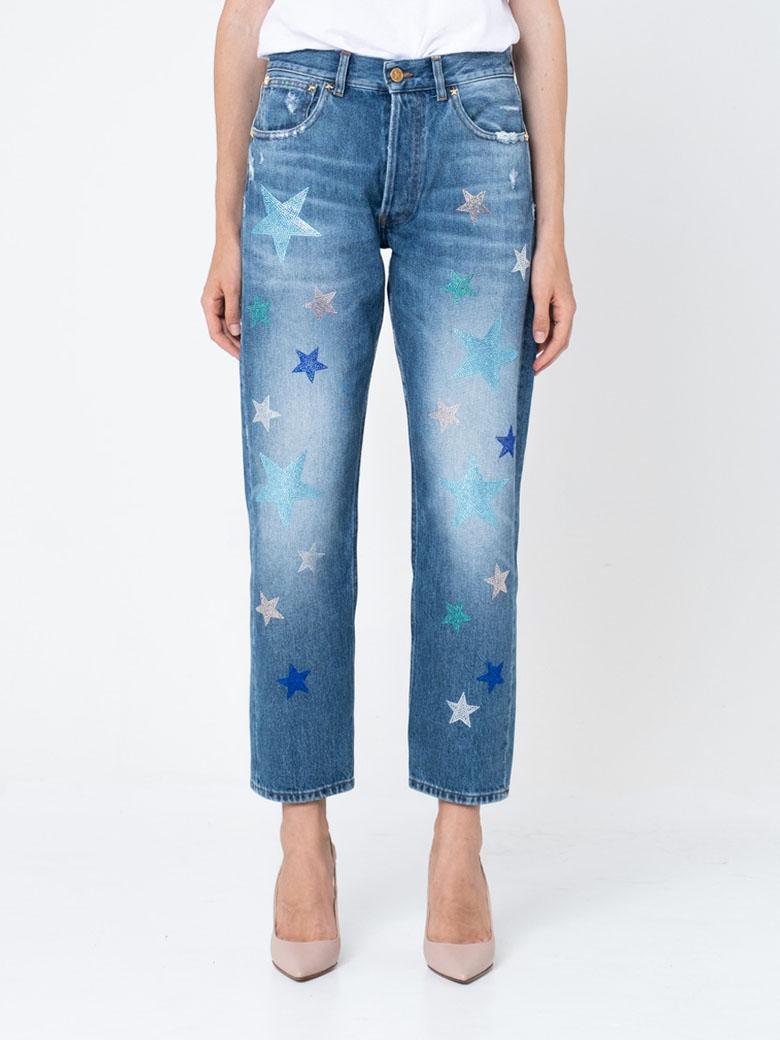 Pantalone Panna , presenta bande laterali con stelle applicate color viola metallizzato.