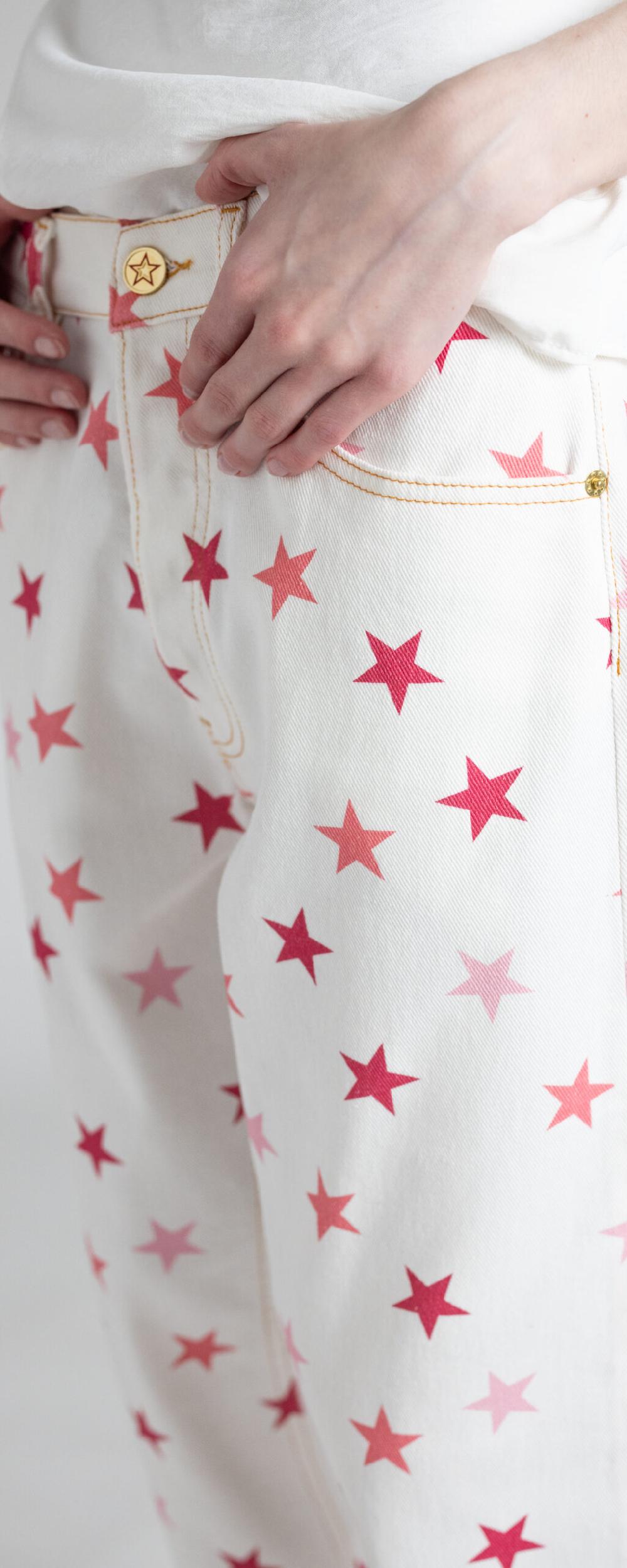 Base pantalone bianco con stelle rosino, rosa e fucsia.