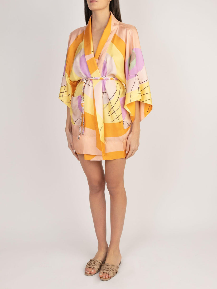 Sans Tabù Kimono corto pura seta manica lunga "Il bacio" – Nude Fino Al -60%